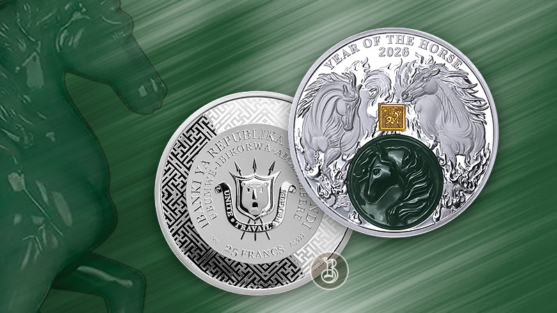Серебряная монета Year of the Horse 2026 весом 2 унции — эффектный нумизматический выпуск, объединяющий благородное серебро и натуральный нефрит. Посвящённая году Лошади по восточному календарю, монета символизирует силу, стремительность, успех и финансовое благополучие.