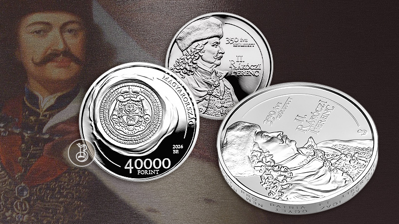 Интересная серебряная монета 2026 года, выпущенная Венгерским национальным банком в честь 350-летия со дня рождения Ференца II Ракоци (1676–1735). Национальный герой Венгрии стал известен тем, что возглавил национальное восстание всей страны против правления Габсбургов.