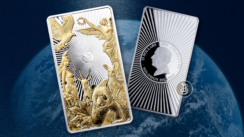 Этот исключительный серебряный слиток весом 1 кг из серии «Знаменитые легенды слитков» демонстрирует самые известные нумизматические мотивы, используемые на наиболее популярных инвестиционных монетах мира. Каждый образ подчеркнут 24-каратным золотым покрытием, создающим яркий контраст. Известные всему миру символы, такие как панда, кенгуру, антилопа спрингбок, орел и кленовый лист, органично сочетаются с мифологическими фигурами, создавая захватывающую и гармоничную композицию. Изысканный дизайн и мастерство изготовления делают эту насыщенную образами монету уникальным образцом для коллекционирования.