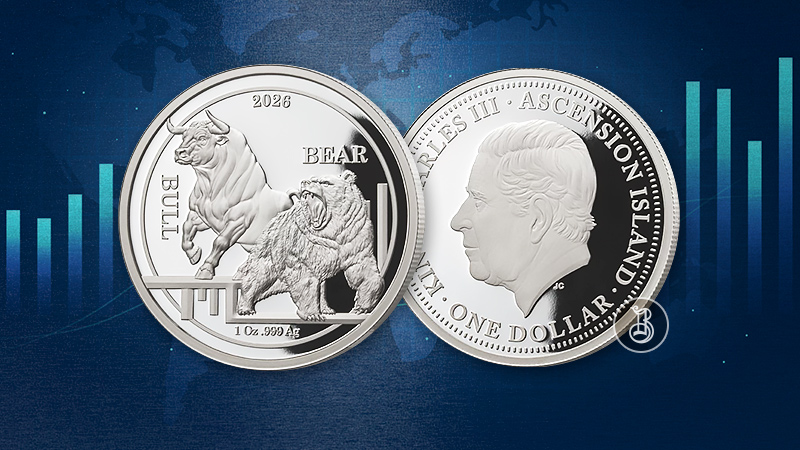 Серебряная монета «Бык и Медведь» символически отражает вечное противостояние двух сил, определяющих динамику мировых финансовых рынков. Образы быка и медведя – признанные символы роста и падения, оптимизма и осторожности – воплощают идею движения, борьбы и баланса, лежащих в основе биржевой торговли.