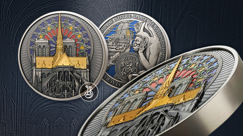 Потрясающая детализация и глубина изображения делают эту монету одной из лучших в мире, посвящённых собору Парижской Богоматери. Монета отчеканена из серебра 999-й пробы, масса – 1000 грамм. Качество чеканки – «antique finish». Тираж – 99 экземпляров.