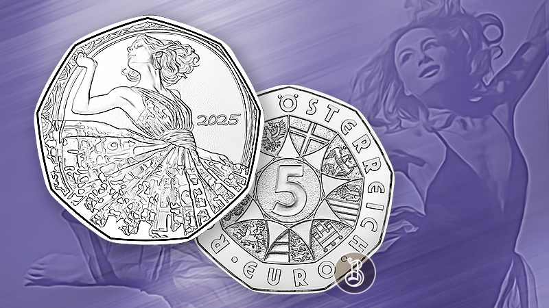 Серебряная монета 2025 года называется «Dance Away». Она сочетает в себе обращение к богатым танцевальным традициям Вены и позитивный символизм новых начинаний.