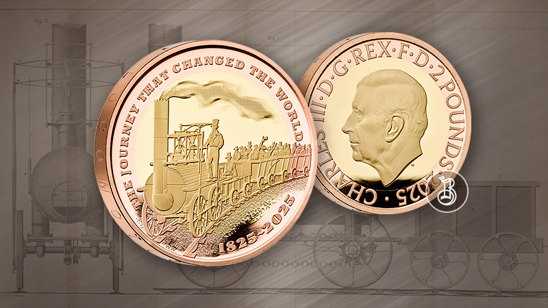 Специальный выпуск Королевского монетного двора Великобритании посвящен двум столетиям со дня зарождения современной железной дороги и новаторскому путешествию 27 сентября 1825 года.