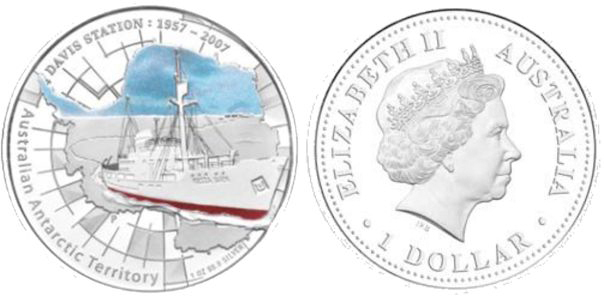 Серебряная монета Полярная станция "Дэвис" – Австралийская территория Антарктиды 31.1 г чистого металла, 1 AUD, 2007