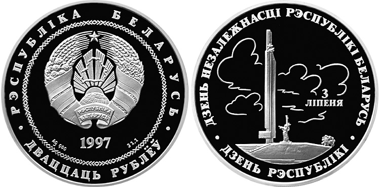 Серебряная монета День Республики – 31.1 г чистого металла, 20 BYR, 1997