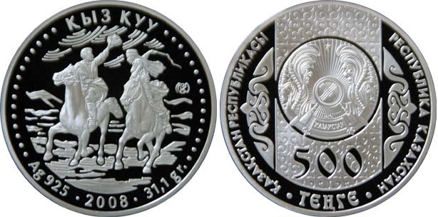 Серебряная монета Догони девушку – 28.77 г чистого металла, 500 KZT, 2008