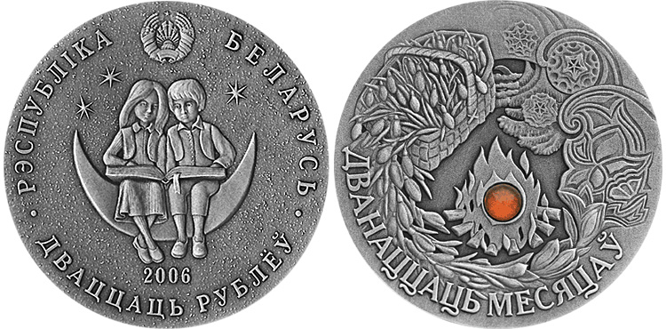 Серебряная монета Двенадцать месяцев – Сказки народов мира 26.16 г чистого металла, 20 BYR, 2006