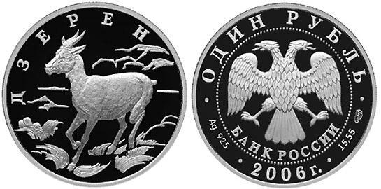 Серебряная монета Дзерен – Красная книга 15.55 г чистого металла, 1 RUB, 2017