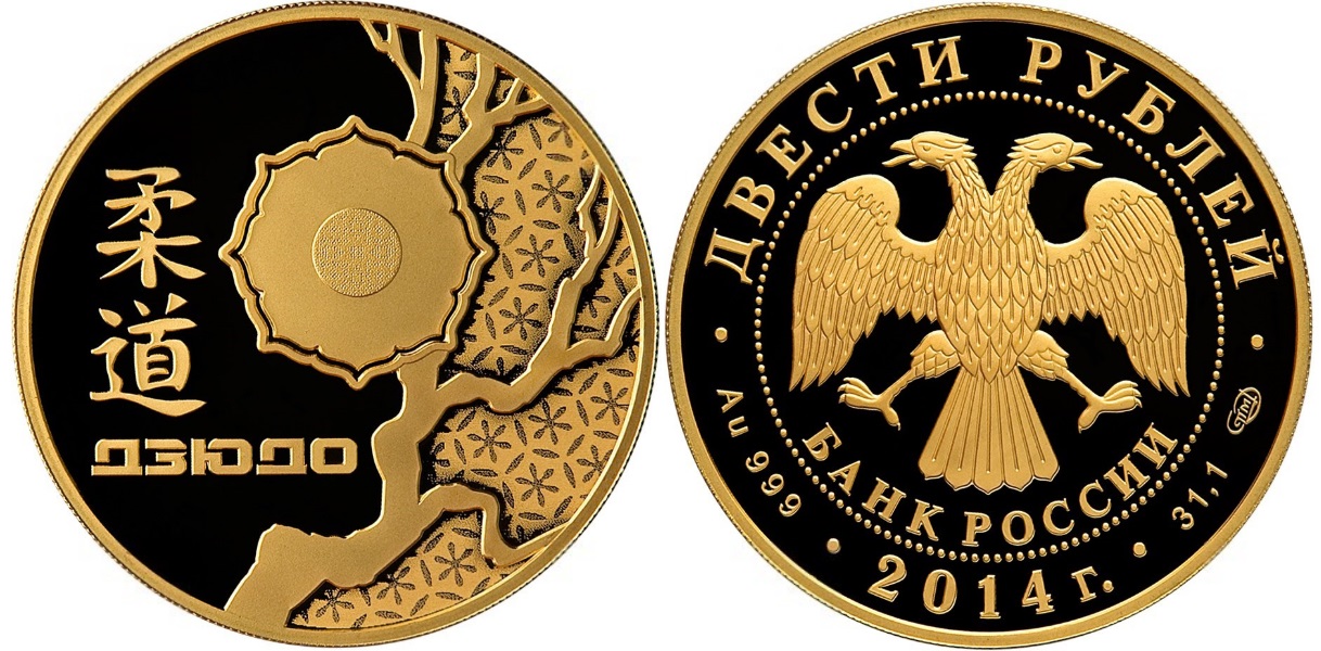 Золотая монета Дзюдо – 31.1 г чистого металла, 200 RUB, 2014