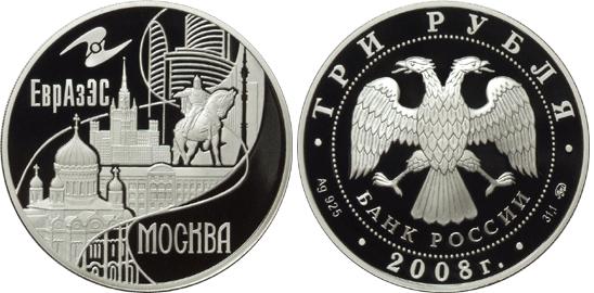 Серебряная монета Москва (ЕврАзЭС) – Столицы стран - членов ЕврАзЭС 31.1 г чистого металла, 3 RUB, 2008