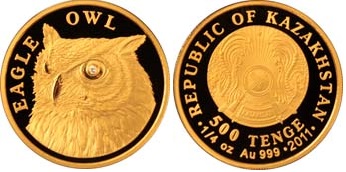 Золотая монета Филин – 7.78 г чистого металла, 500 KZT, 2011