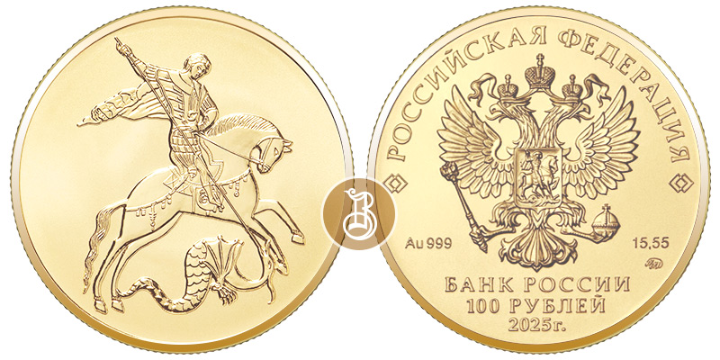 Золотая монета Георгий Победоносец 100 руб – 15.55 г чистого металла, 100 RUB,
