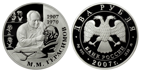 Серебряная монета 100-летие со дня рождения М.М. Герасимова – Выдающиеся личности России 15.55 г чистого металла, 2 RUB, 2007