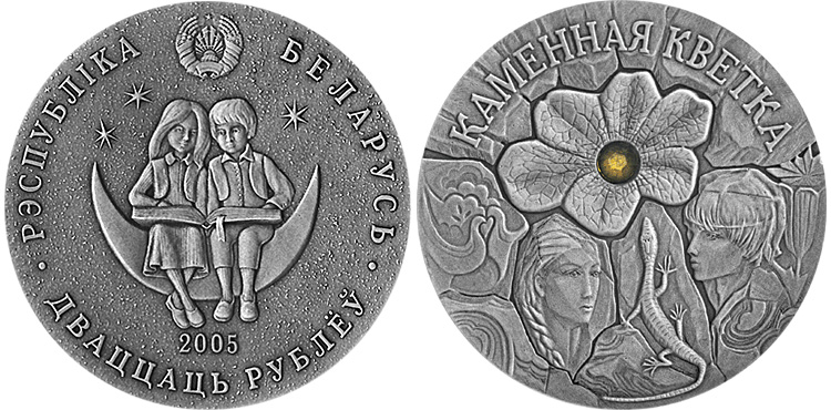 Серебряная монета Каменный цветок – 26.16 г чистого металла, 20 BYR, 2005