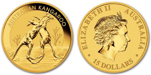 Золотая монета Кенгуру. 1/10 унции – 15 AUD, вес чистого металла 3.11 г, с 2012 г.в.