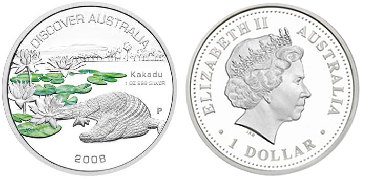Серебряная монета Какаду – Открой Австралию 31.1 г чистого металла, 1 AUD, 2008