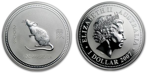 Серебряная монета Год крысы – Лунная серия I 1 AUD, вес чистого металла 31.1 гр.