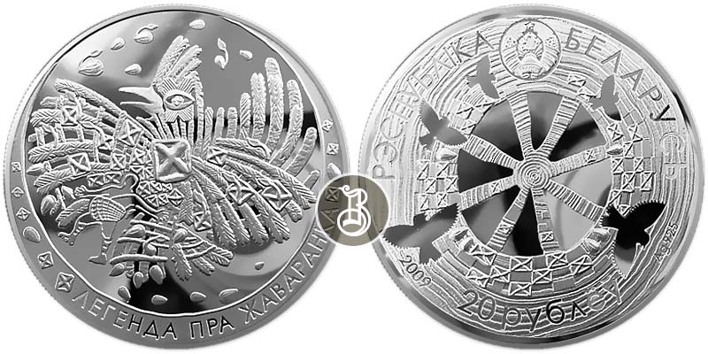 Серебряная монета Легенда о жаворонке – 31.1 г чистого металла, 20 BYR, 2009