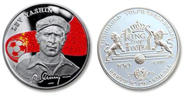 Серебряная монета Лев Яшин – Короли футбола 26.16 г чистого металла, 100 AMD, 2008