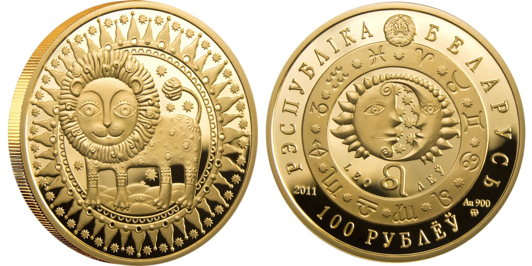 Золотая монета Лев – Знаки зодиака 13.95 г чистого металла, 100 BYR, 2011