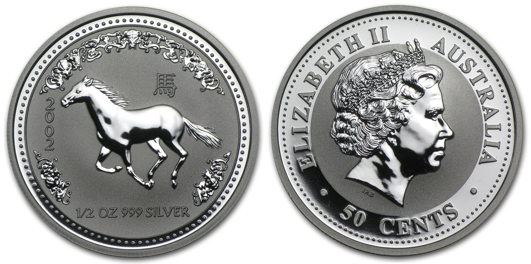 Серебряная монета Лошадь – Лунная cерия I 15.55 г чистого металла, 0,5 AUD, 2002