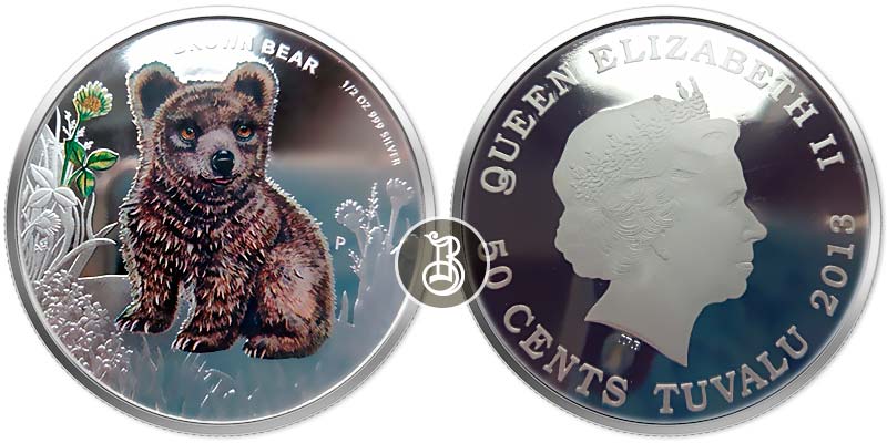 Серебряная монета Бурый медведь – Дети леса 15.55 г чистого металла, 0,5 TVD, 2013