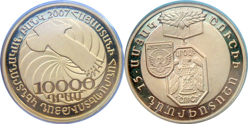 Золотая монета 15 лет Освобождению Шуши – 7.74 г чистого металла, 10 000 AMD, 2007