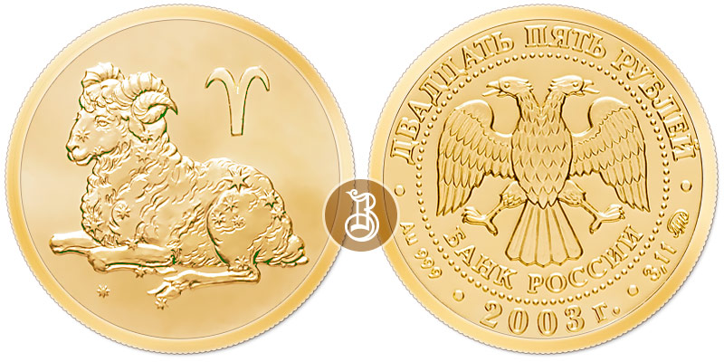 Чеканка: Санкт-Петербургский монетный двор (СПМД). Оформление гурта: 111 рифлений. Созвездие Овна содержит 82 звезды, видимых невооружённым глазом. Находится в Северном полушарии.
