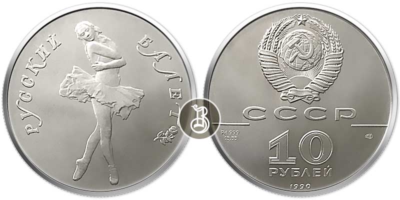 Палладиевая монета Русский балет. Танцующая балерина. – Русский балет 15.55 г чистого металла, 10 RUB, 1990