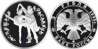 Серебряная монета Спящая красавица (Па-де-де из первого действия) – Русский балет 31.1 г чистого металла, 3 RUB, 1995