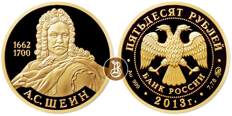 Золотая монета Шеин А.С. – Выдающиеся полководцы и флотоводцы России 7.78 г чистого металла, 50 RUB, 2013