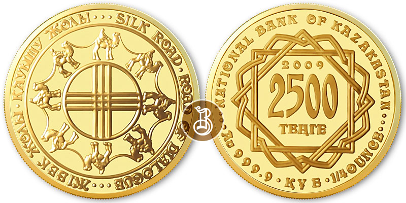 Золотая монета Шелковый Путь – 7,78 г чистого металла, 1 500 KZT, 2009