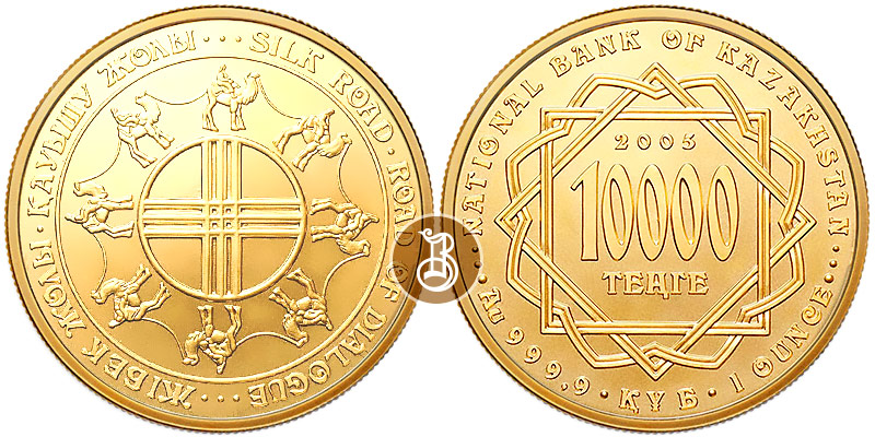 Золотая монета Шелковый Путь – 31.1 г чистого металла, 10 000 KZT, 2005
