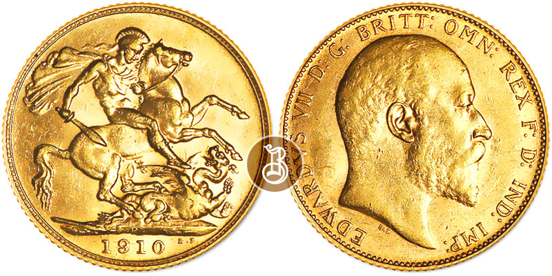 Золотая монета Соверен 1/2 Эдуард VII – Соверен 3.65 г чистого металла, 1 соверен, 1908