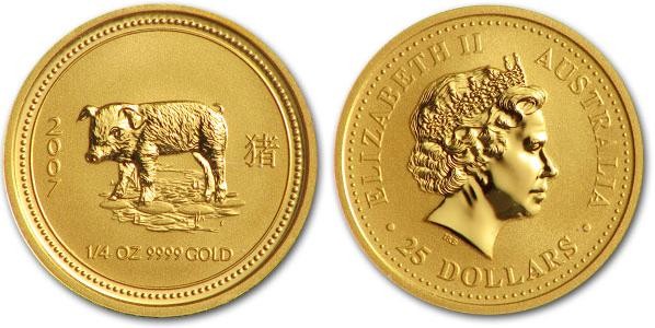 Золотая монета Австралийский Лунар. Год Свиньи. 1/4 унции – Лунная cерия I 7.78 г чистого металла, 25 AUD, 2007