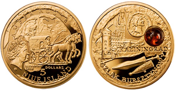 Золотая памятная (коллекционная) монета Янтарный путь, золото, 1/2 oz, Ниуэ, 2008, 13,95 гр., (0,448 oz), проба 900