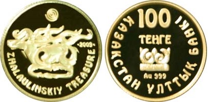 Золотая монета Жалаулинский клад – Сокровища древних курганов. Берельский курган 1.24 г чистого металла, 100 KZT, 2009