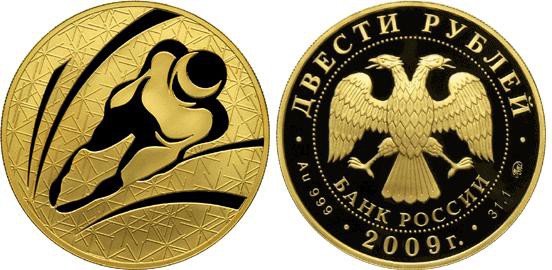 Золотая монета Санный спорт – Зимние виды спорта 31.1 г чистого металла, 200 RUB, 2009