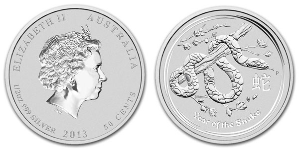 Серебряная монета Змея-II – Лунная серия II 15.55 г чистого металла, 0,5 AUD, 2013