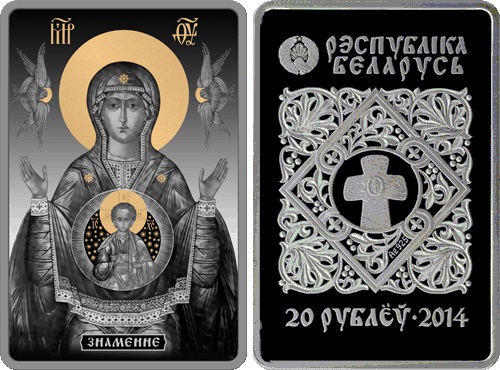 Серебряная с золотом монета Икона Пресвятой Богородицы "Знамение" – Православные чудотворные иконы 28.77 г чистого металла, 20 BYR, 2014