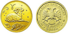Монета "Скорпион", серия: "Знаки зодиака", Золото, проба: 999, вес, гр.: 7,89, вес чистый, гр.: 7,78, вес, oz.: 0,25, номинал: 50 RUB, proof, РОССИЯ, 2003